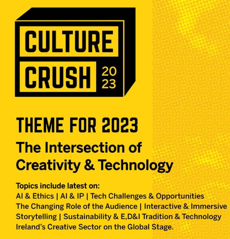 Culture Crush is a new event bringing together a broad mix of professionals in the creative sectors; Film, TV, Animation, Games, Music, Immersive, Visual & Performing Arts & more. It's organised by Cultural & Creative Industries Skillnet with the theme for 2023 in: Intersection of Creativity & Tech.